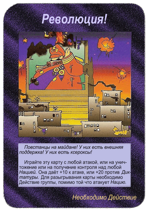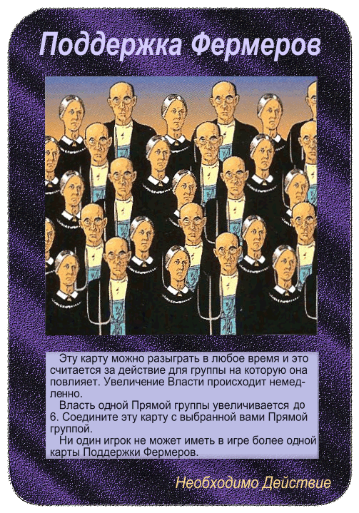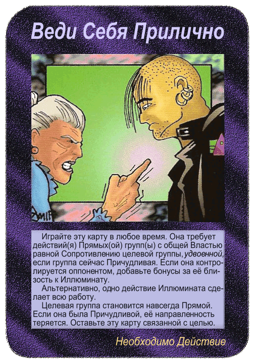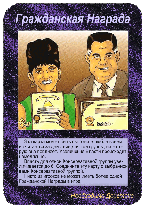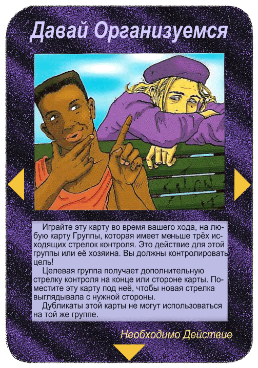Играйте эту карту в любое время. Этой карте необходимо действие одной группы с Властью 4 или больше.