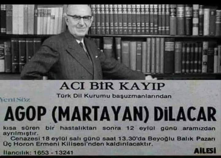 Акоп Мартаян (Дилачар) скончался 12 сентября 1979 в Стамбуле, сыграв огромную роль в развитии турецкого языка и лингвистики.