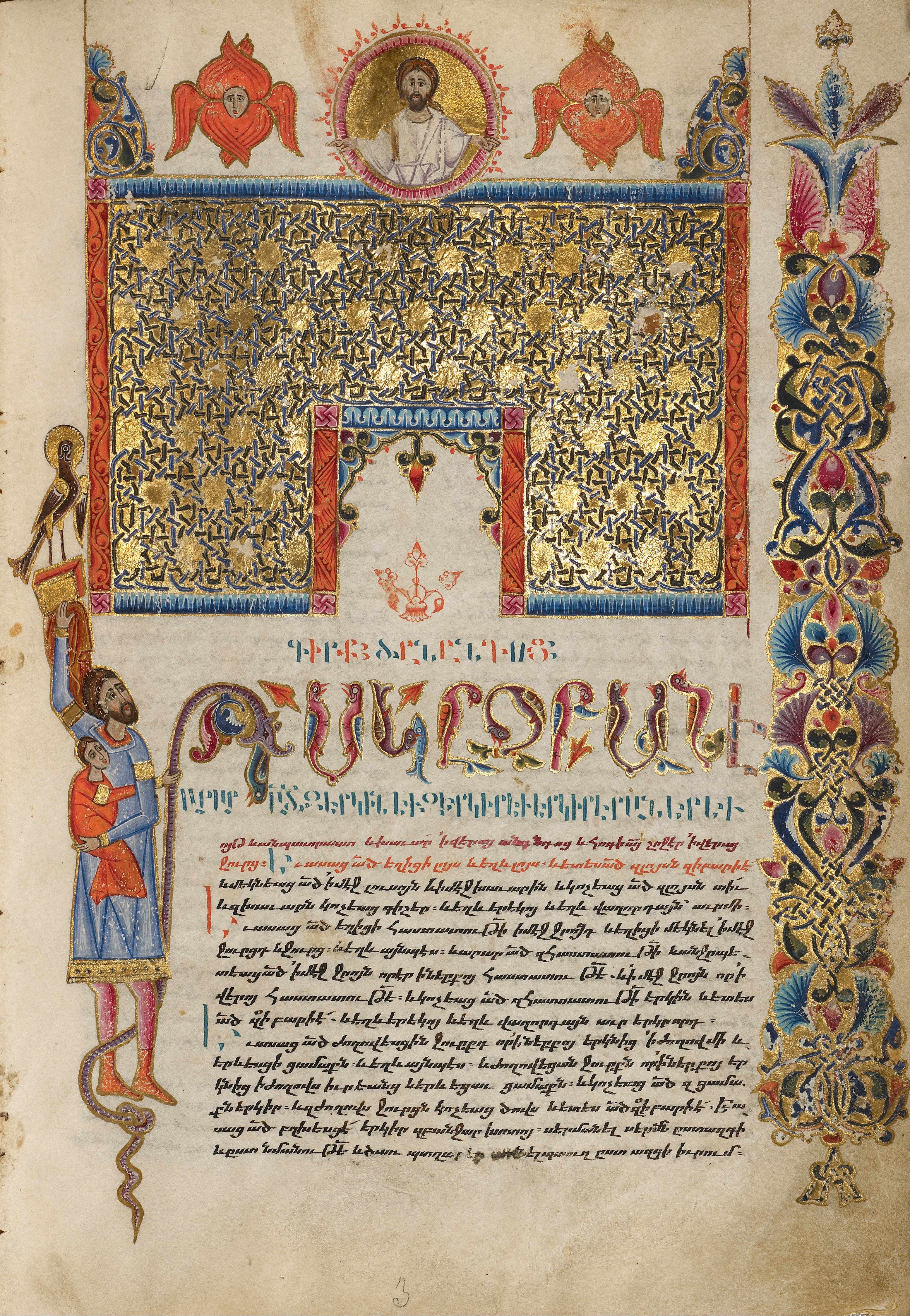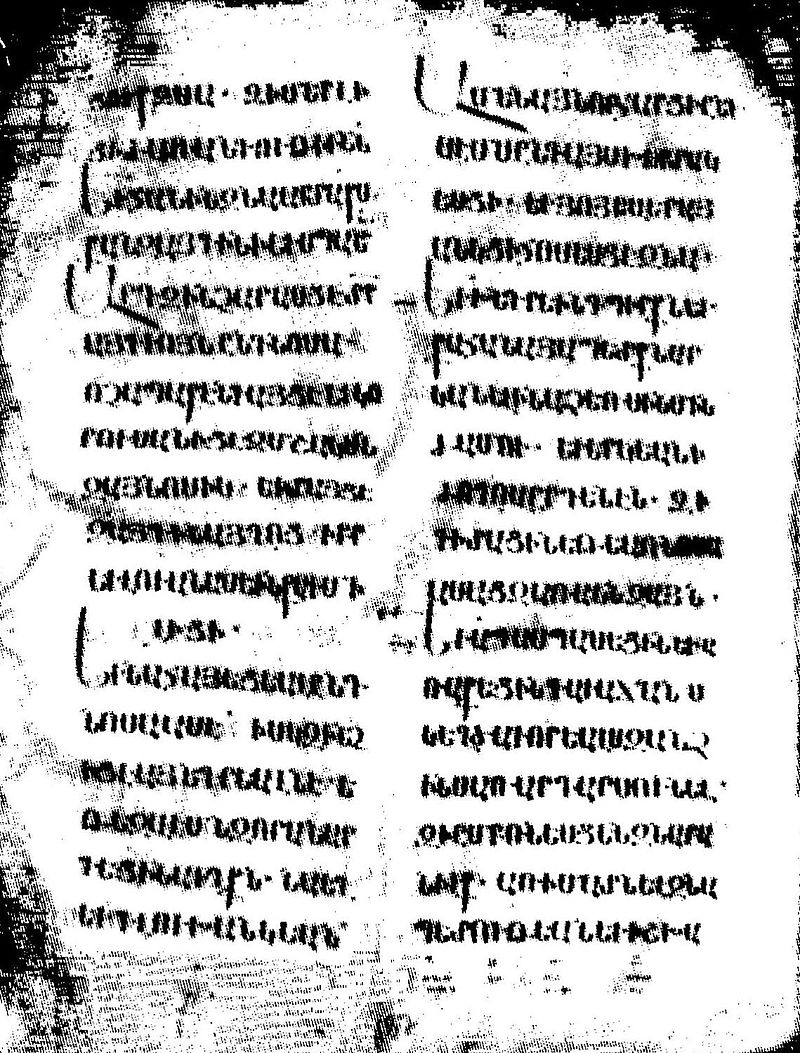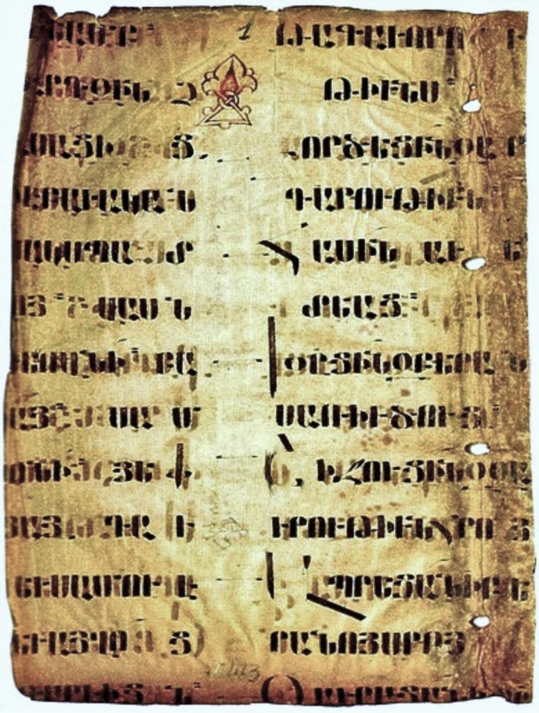 Древнейшие армянские тексты сохранились в манускриптных фрагментах концa V века. Основные 4 графические формы армянского письма Средних веков — еркатагир, болоргир, шхагир и нотргир. Из них первый является маюскульной формой, остальные три — минускульной формой начертания букв.
