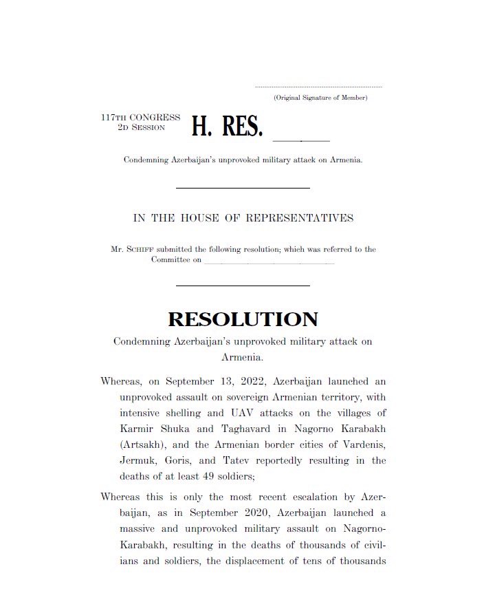 Adam Schiff: -Azerbaijan must stop attacking and terrorizing innocent Armenian civilians. And the U.S. and its allies must unequivocally condemn Azeri actions.
