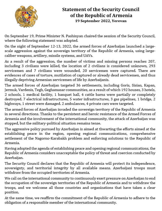 After days of false accusations and concocting a ground for a military attack the Azerbaijani Armed Forces launched a major military operation against the Republic of Armenia, primarily using artillery and drones, along the Armenia-Azerbaijan border starting at 00:05