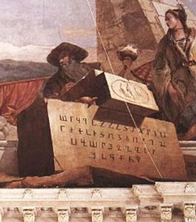 Wurzburg Residence, Fresco by Giambattista Tiepolo on ceiling of entrance, Mesrop Mashtots and Armenian Letters