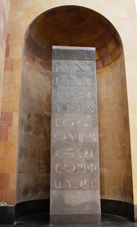 The Armenian Alphabet was invented in 405 AD by Armenian linguist, statesman and hymnologist Mesrop Mashtots. Armenian calligraphy is included in the UNESCO Representative List of the Intangible Cultural Heritage.