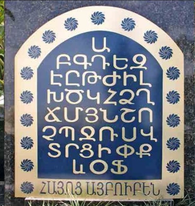 The Armenian alphabet is a prayer. Each letter means one word. It is in the order that Mesrop Mashtots created that you can read a prayer.
