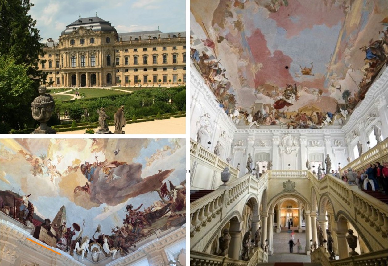 The largest in the world fresco in Würzburger Residenz, Bavaria, Germany created in 1750-1753 by Venetian painter Giovanni Battista Tiepolo. It shows paintings of the four continents: Europe, America, Asia and Africa.