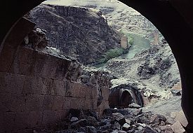 It leads down to the Akhurian river (and not into the monastery as stated in some books), and probably contained a roadway leading to the bridge over the river. Its covered construction may have been designed to further separate the outside world from the monastery which was already situated in an isolated part of the city.