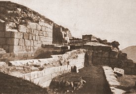 To the left of the rectangular tower is a stretch of the citadel wall [c] whose masonry facing seems to be surprisingly fresh in appearance (see photograph 6). This is probably an unrecorded reconstruction from the time of Marr's excavations.