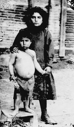 Starved sister and brother orphaned during the massacres Der-Zor, 1919