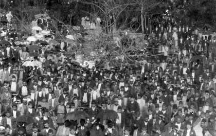Armenian refugees at the pyramid made from the sculls of Armenian martyrs