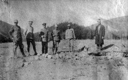 The German and Turkish officers posing to take photographs with skulls of the Armenian victims