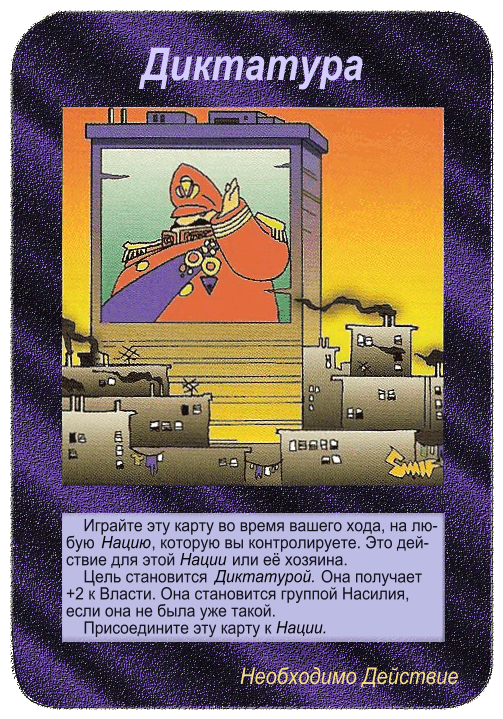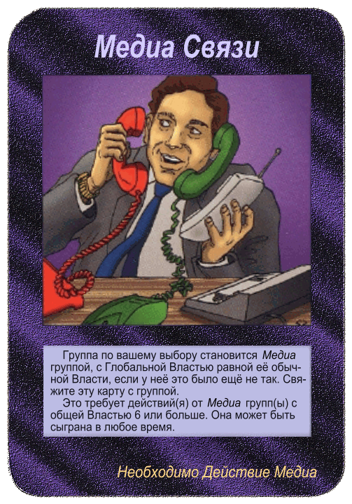 Играйте эту карту в любое время. Этой карте необходимо действие одной группы с Властью 4 или больше.