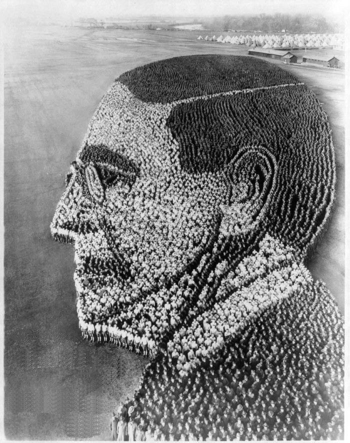 "Живой" портрет президента США Вудро Вильсона, образованный  21 тысячей солдат и офицеров,  штат Огайо, 1918 год