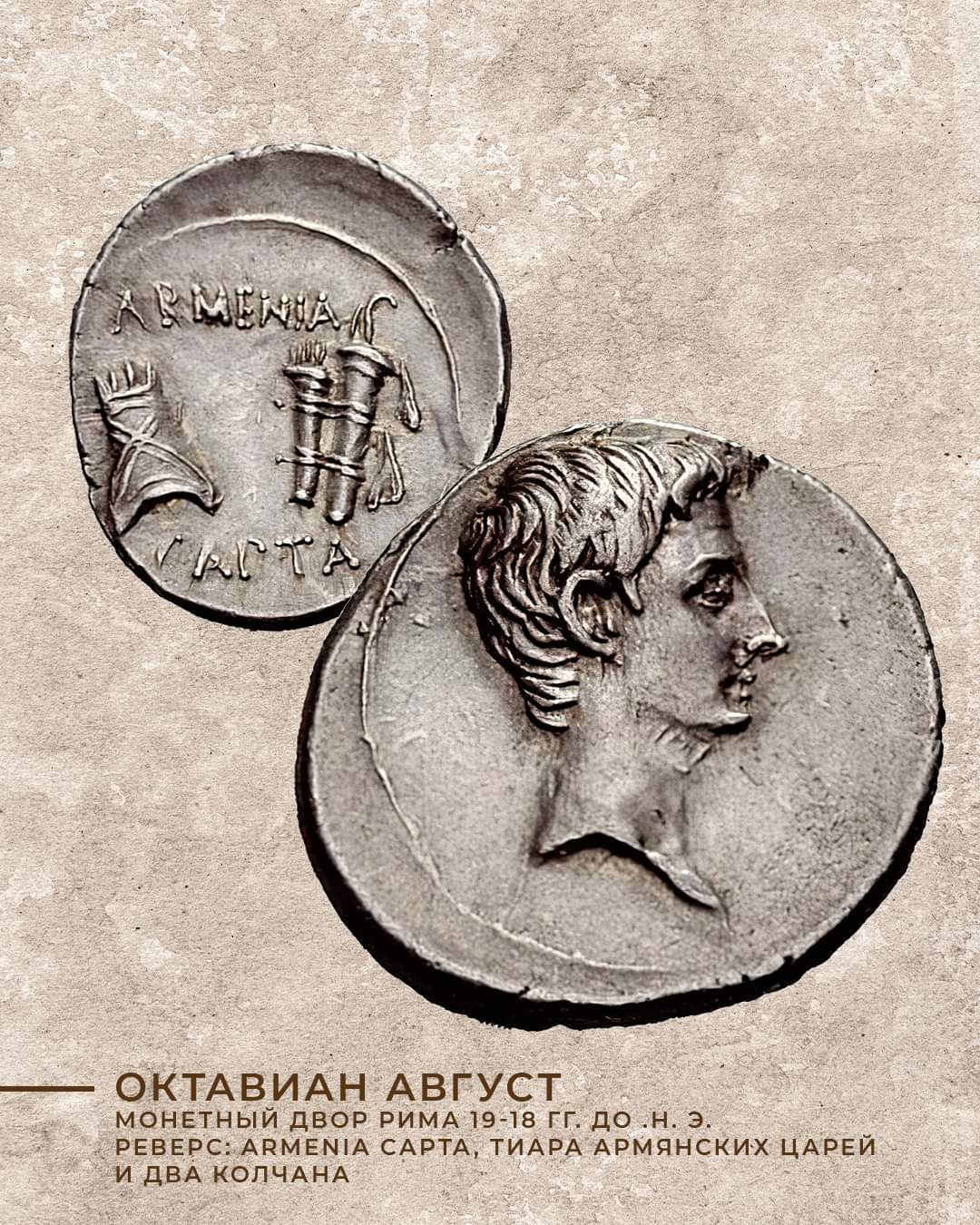 📜 #ИсторияАрмениинасчитывает не одну тысячу лет, а сами армяне жили задолго до возникновения наций современной Европы. Они существовали и до появления античных народов – римлян и эллинов. За время своей многовековой истории Великая Армения периодически оказываясь под римским протекторатом. А свидетельствами этих важных политических событий становились в том числе и монеты!