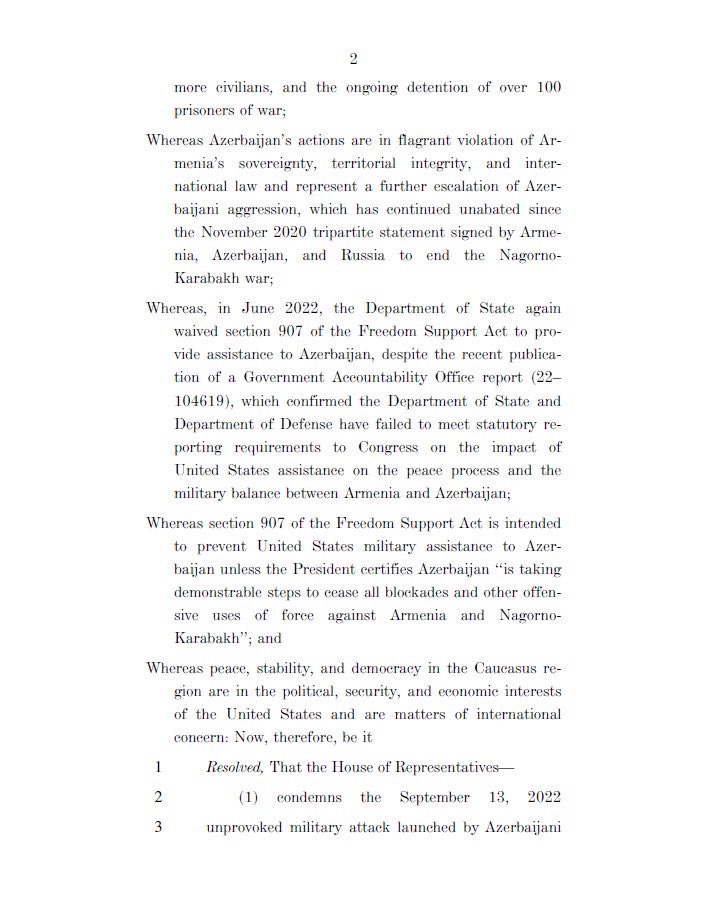 Today, we introduced a resolution with a resounding message: No more U.S. support for Azerbaijan. It must pay for its belligerence.