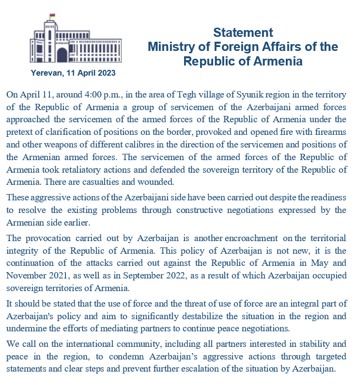 After days of false accusations and concocting a ground for a military attack the Azerbaijani Armed Forces launched a major military operation against the Republic of Armenia, primarily using artillery and drones, along the Armenia-Azerbaijan border starting at 00:05