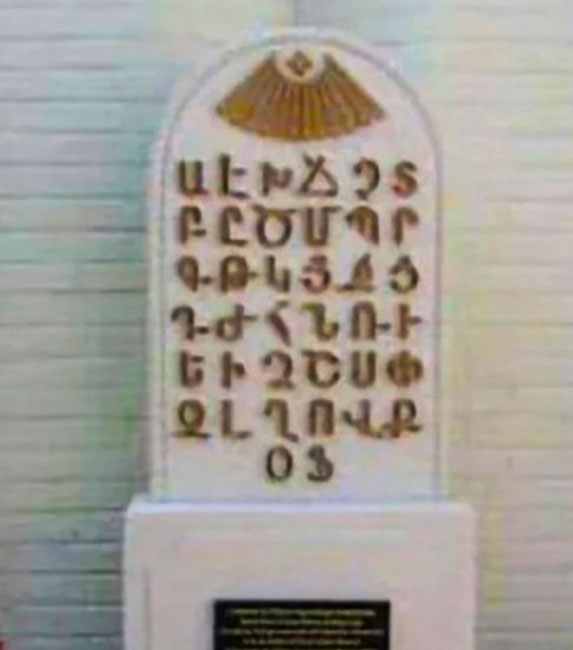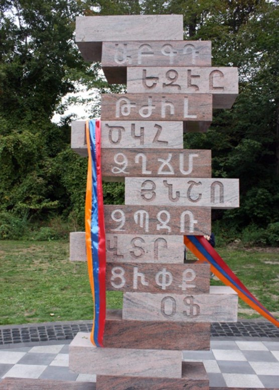 Armenian Alphabet, Providence, Rhode Island, USA. The inscription: “As long as the Armenian speech will sound and the Armenian script will exist, Armenia will live.”