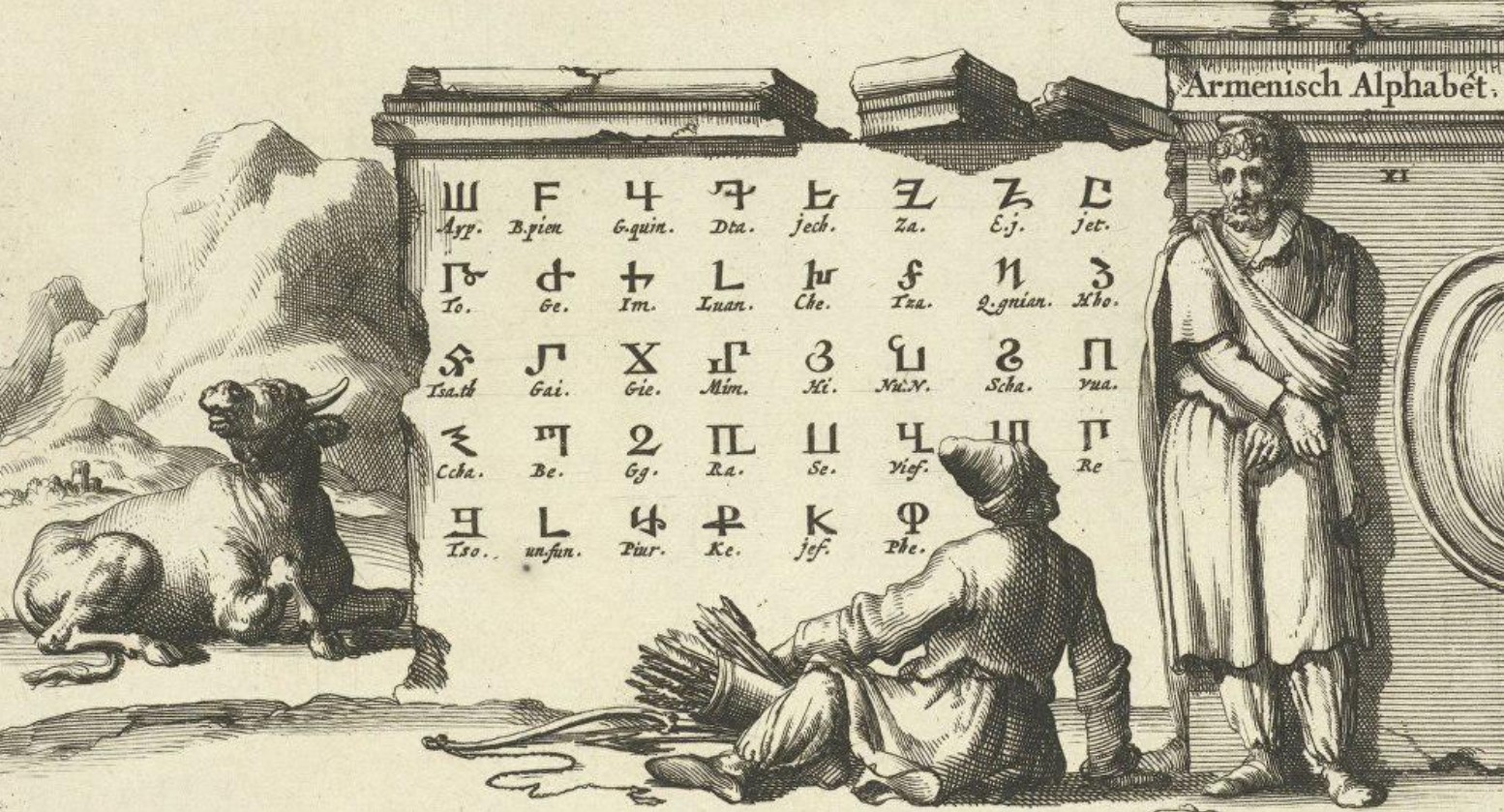 The Armenian Alphabet on an engraving by the Dutch artist Jan Leikin, 1690