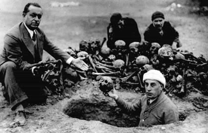 The German and Turkish officers posing to take photographs with skulls of the Armenian victims